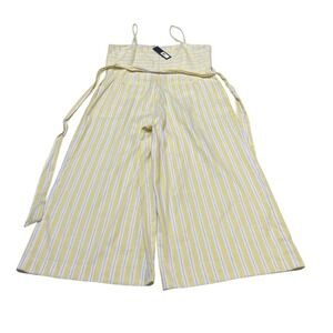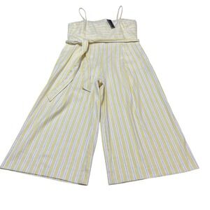 Banana Republic Jumpsuit Yellow Striped Linen Blend Wide Leg Cropped Size 14