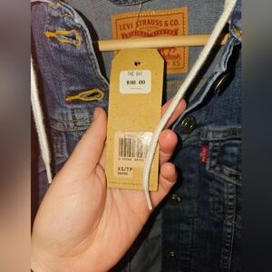 Levis Jean Jacket Boys Girls Blue Denim Gray Hoodie W. Hood Sizs XS BNWTs