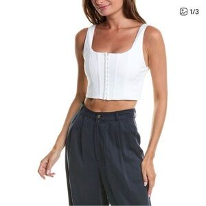 Alice + Olivia Breslin Boned Corset Denim Crop Top White Size 12 NWOT