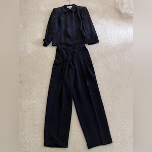 💙 Vintage Jones New York Navy Suit Set Size 4 Cropped Blazer & Trousers