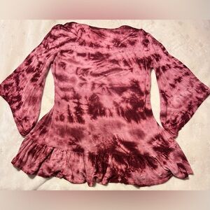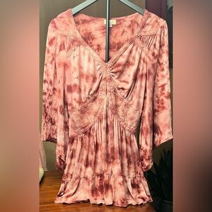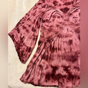 One World Women’s Size Large Burgundy Tie Dye Boho Whimsy Tunic Mini Dress