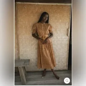 The Prairie Dress in Autumn has been hand block printed using a classic Indian Buti block print, Buti means single flower. Like all of our handcrafted garments, this dress carries a unique story of its own. During lockdown in India, it was made possible for many of our block printers to continue working from the safety of their own home. Due to the artisans printing from different facilities at this time, the base layer Autumn colours of this piece may vary from dress to dress in various shades of Autumn hues.