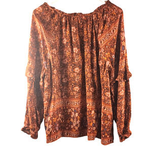 American Eagle Burnt Orange Floral Print Long Sleeve Peasant Blouse Sz Large