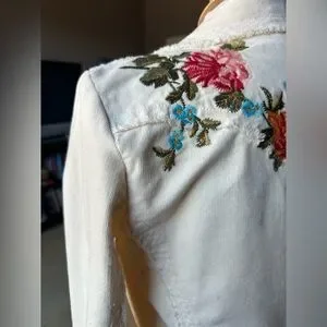 A beautiful Johnny Was boho jacket featuring intricate floral embroidery and a soft, lived-in feel. This piece embodies bohemian luxe, artisanal craftsmanship, and an effortless romantic cottagecore vibe—perfect for layering year-round.