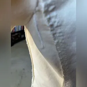 There is a prior repair at the underarm, shown clearly in the photos. It does not detract from the overall wearability, but I want to be fully transparent. Please review images carefully and reach out with any questions before purchasing.