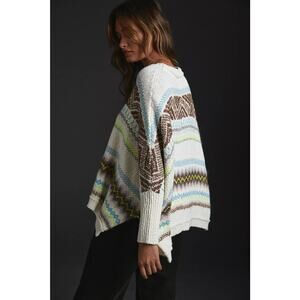Anthropologie Fair Isle Printed Long Sleeve Crewneck Swing Poncho Sweater White