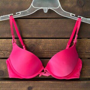 Victoria's Secret Miraculous Plunge Padded Push Up HOT PINK Bra Size 34B