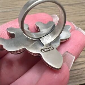 Designed to look like a cactus. The stones are ballon opals that have a rainbow color effect. It is sterling and size adjustable. Currently sits at a 7 and can go up to about an 11. New without tags