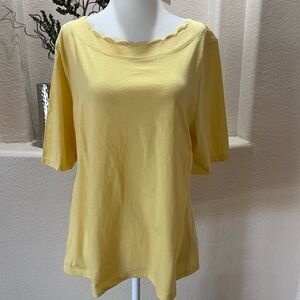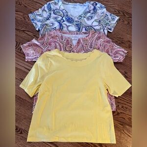 Lot Of 3 Talbots Tee Petite XL Blue Paisley Pink Paisley Yellow Scallop Neck Short Sleeve