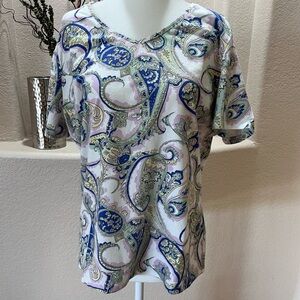 Lot Of 3 Talbots Tee Petite XL Blue Paisley Pink Paisley Yellow Scallop Neck SS