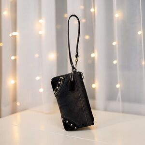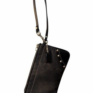 Authentic Pre-Loved Coach Black Signature C Studded Wristlet. Features: