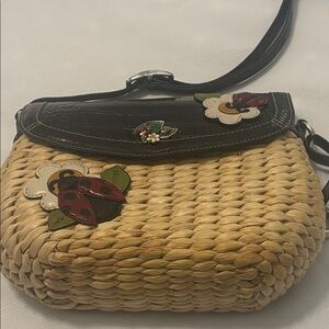VTG Brighton Ladybug Appliqué Rattan Vegan Leather Crossbody Bag Cottagecore