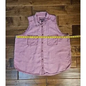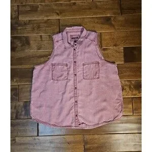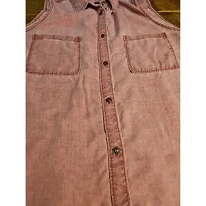 Express EUC women's size XL light red/dark pink collared button up tank top with 2 front pockets