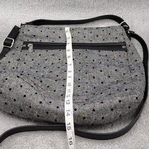 Thirty-One Everything Crossbody Bag Black Tweed Dot Polka Dot Purse Adjustable Strap