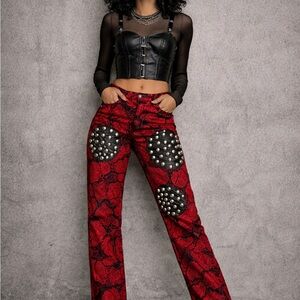 Trash and Vaudeville Red Snake Print Y2K Studded Leather Patch Pants Punk Goth