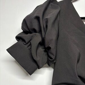 Be all that at your new occasion in this puff sleeve one shoulder dress. The pleat detail makes it even more flattering, Zipper on the back and hook to close,Perfect for evening events.