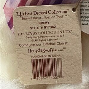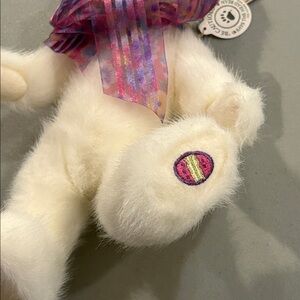 Boyd’s Bears Kimmy white plush bear with embroidered Easter egg on left foot and a gorgeous purple pastel bow. Brand new just removed from bag for pictures. Charming 10 inch white teddy bear, style #917382. Fully pose-able arms and legs. Collectible and rare.