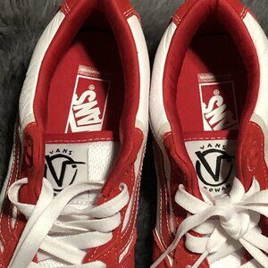 VANS Men's Rowan Zorilla 2 Tone Red White Suede/Canvas Skate Shoe, Size 13
