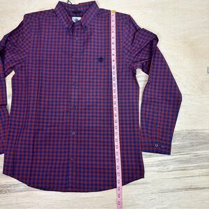 Element men’s red and blue long sleeve button down collared plaid shirt. Size medium. New with tags.