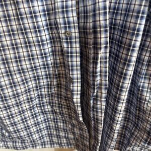 The Jos A Bank Traveler Blue Plaid Button Down Dress Shirt in size XXL is a versatile and stylish option for men seeking a comfortable yet put-together look. Made from 100% cotton, this shirt features a classic collared neckline, long sleeves, and a button closure. With a regular fit and 32-inch shirt length, it is suitable for various occasions such as travel, casual outings, workwear, and business settings. The blue plaid pattern adds a touch of sophistication, while the easy-care material and machine washable design make it convenient for everyday wear.