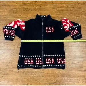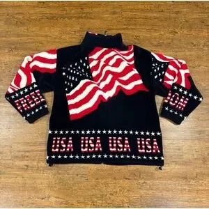 VTG Black Mountain Outdoor USA America Flag Fleece Full Zip Jacket Sweater Men L