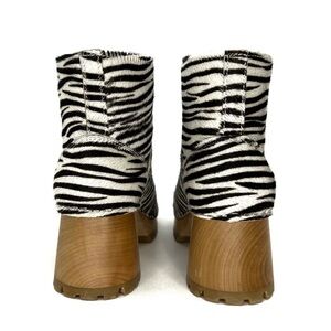 NEW Swedish Hasbeens Zebra Print Calf Hair Wooden Clog Booties Size 36/6 New