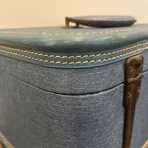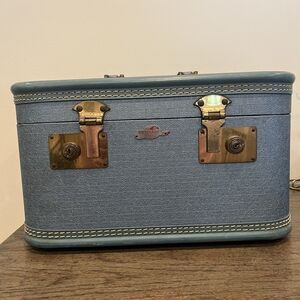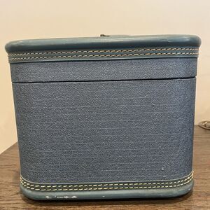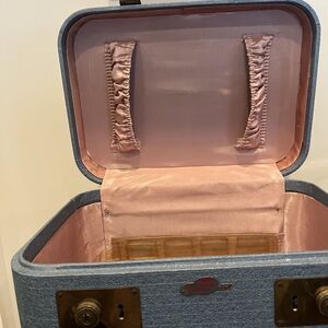 Rare First Lady 1960's Blue Train Case Pebbled, Pink Interior Riveted No Key