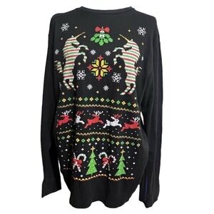 Unicorn black tacky Christmas sweater size L/Large.