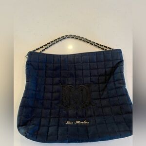 Elevate your style with the Love Moschino Quilted black Shoulder Bag. This elegant accessory features a luxurious quilted design and a chic chain strap, perfect for any occasion. Some signs of wear, all taken in picture, price was reviewed accordingly . quilted chain shoulder bag, Love Moschino black velvet bag, designer inspired quilted bag, evening bag / everyday chic bag