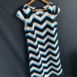 Madison Leigh Women’s Cap Sleeve Zig Zag Chevron Black White Blue Dress 6 in good preowned condition