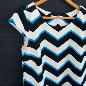 Madison Leigh Women’s Cap Sleeve Zig Zag Chevron Black White Blue Dress 6