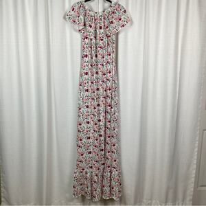 Busy Bees Smocks White&Pink Floral Off The Shoulder Maxi Dress Sz.L NWT