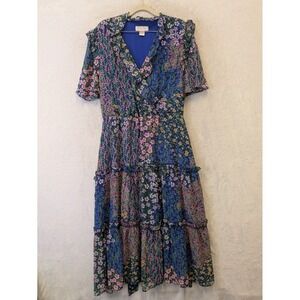 Rachel Parcell Women's Size 16 Blue Floral Tiered Ruffle Midi Dress