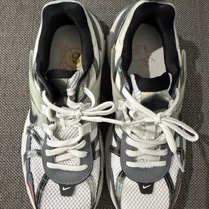 Nike V2 White and Gray Athletic Shoes with Pink Highlights