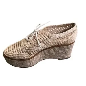 SCHUTZ Jules Woven Raffia Espadrille Lace Up Wedge Platform Shoes Size 8.5