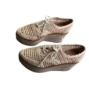 The SCHUTZ Jules Woven Raffia Espadrille Lace Up Wedge Platform Shoes in size 8.5 are the perfect combination of style and comfort for the modern woman. With an almond toe shape and lace-up closure, these shoes are ideal for casual or workwear occasions during the summer and spring seasons. The tan color and wedge heel style add a touch of sophistication to the espadrille design, while the man-made upper material ensures durability. Designed by Schutz in Brazil, these shoes are a must-have for any fashion-forward wardrobe.
