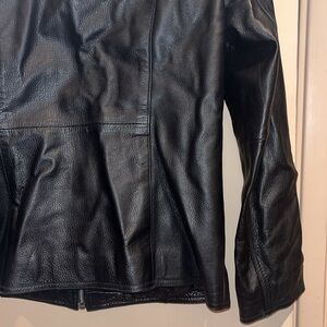 Oakwood Outdoor black leather motorcycle style jacket. Size medium