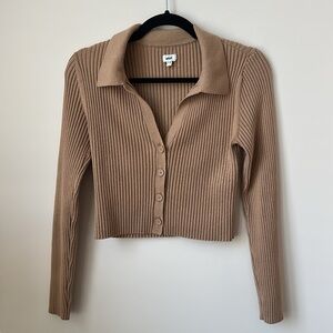 Stylish ribbed jumpsuit. Button-up front. Long sleeves. Comfortable fit.