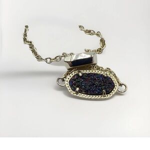 Classic Kendra Scott Elisa bracelet featuring a gold-tone adjustable chain with an oval black druzy center stone. This is a versatile, minimalist piece that layers beautifully or wears well on its own.