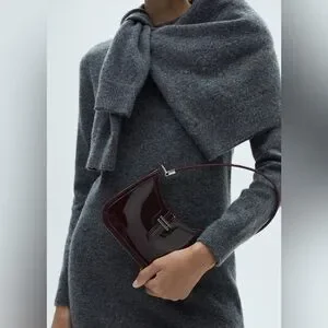Wool mix fabric. Midpoint. Short design. Straight design. Rouna neckline. Long sleeves.
