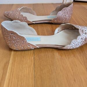 Chic light pink flats with intricate cutout design. Perfect for adding elegance.