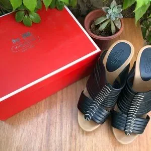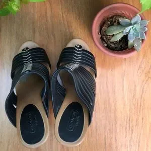 Stylish Coach wedges. Black leather straps. Comfortable design.