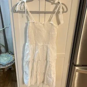 American eagle white eyelet smocked tiered dress with ties sz s