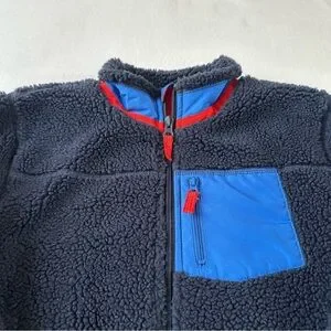 OshKosh Boys Sherpa Zip Hoodie Blue Red Trim Cozy Lined Size 8