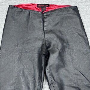 Misdemeanor Black Leather Pants Womens Size 5 Flat Front Raw Cuff Mid Rise Lined