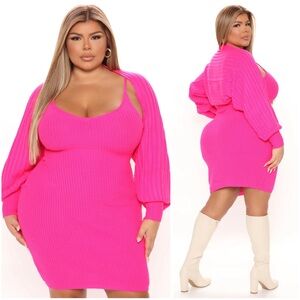 Perfect Cuddle Sweater Dress Set - Hot Pink - Sz 1X