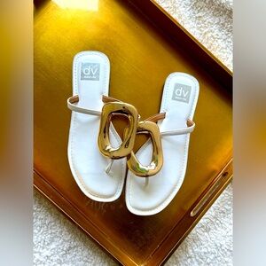 DV Dolce Vita Jameson Gold Hardware White Sandals | Size 8