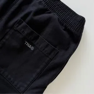 Aritzia TNA Christie Pant in black. Wide leg pull-on style with elastic waist. 100% cotton. Relaxed minimal fit.