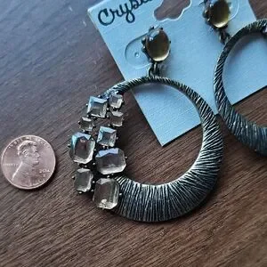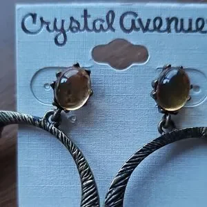 🌞 5 For $25 New Crystal Avenue Sparkly Brass Tan Jeweled Drop Earrings