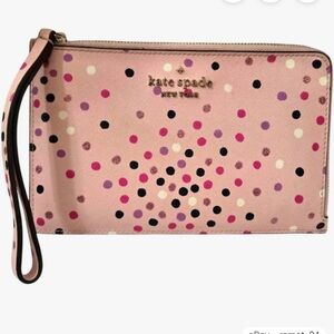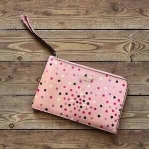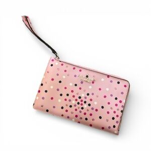 KATE SPADE Pink Staci Festive Confetti Medium Polka Dot L Zip Wristlet